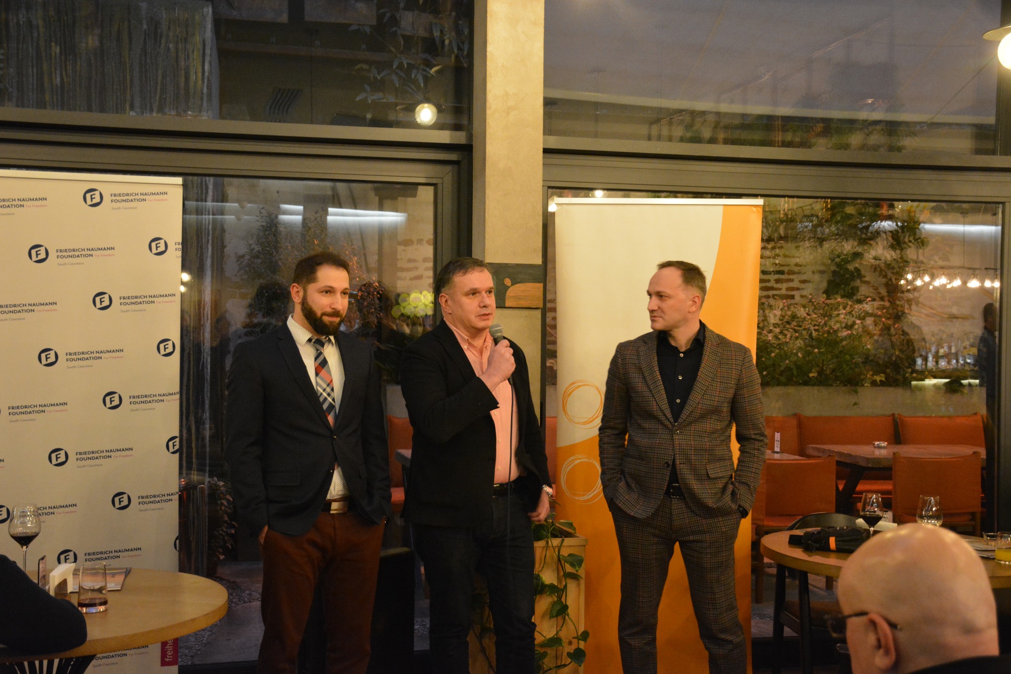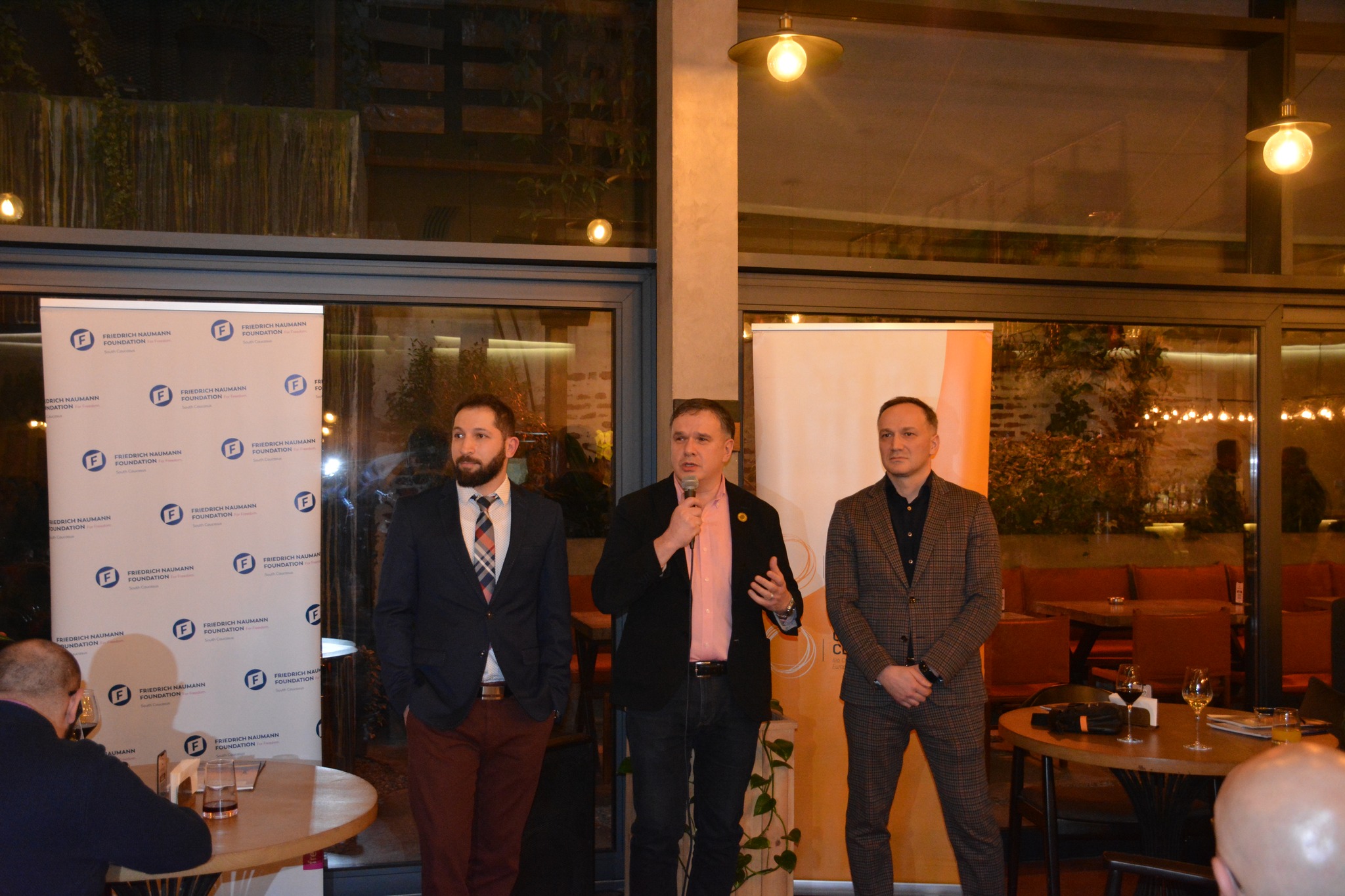 The rector of the University of Georgia, Constantine Topuria, the senior coordinator of the Friedrich Naumann Foundation, Shamil Shugaev, and the chairman of the board of the Chavchavadze Center, Zaza Bibilashvili, spoke at the event.