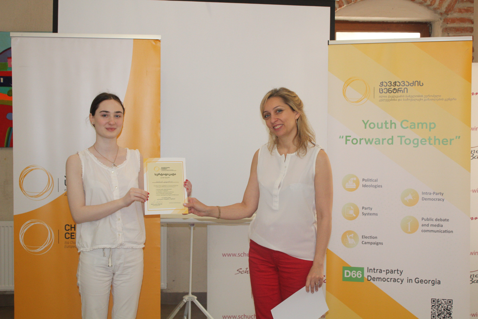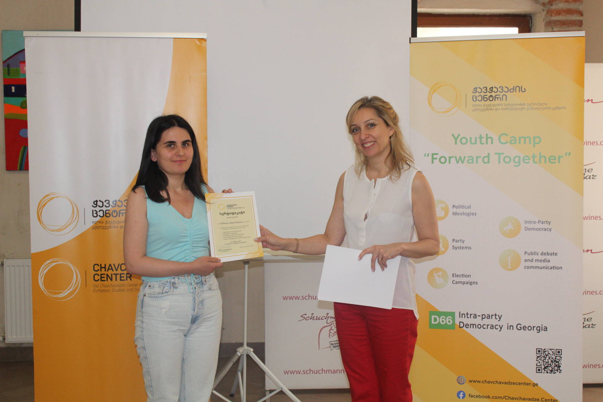ჭავჭავაძის ცენტრის ახალგაზრდული ბანაკის მესამე დღეს, დასკვნითი სესია გაიმართა ლიდერობისა და პოლიტიკის შესახებ, რომელსაც გაუძღვა ჰოლანდიური პარტია D66-ის თავჯდომარე, ვიქტორ ევერჰარდტი.