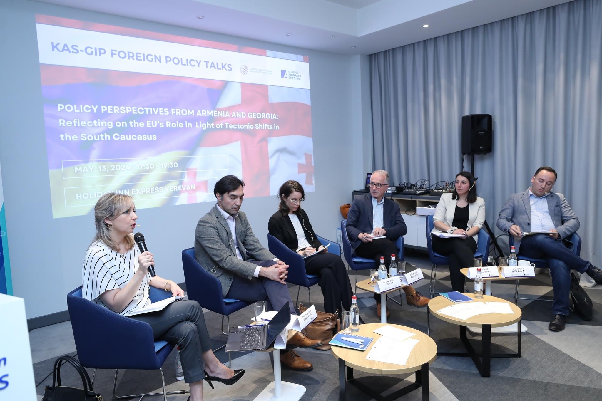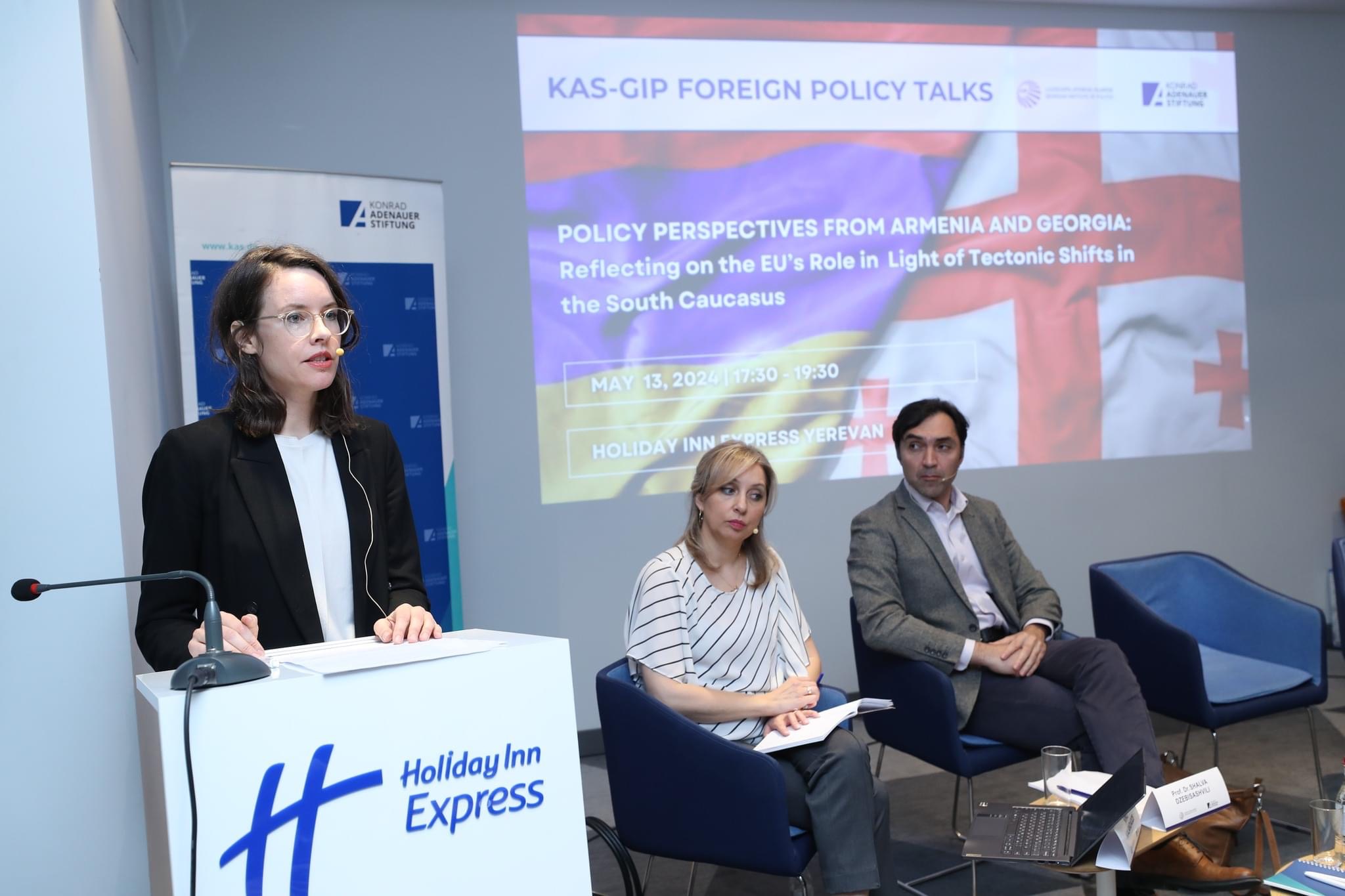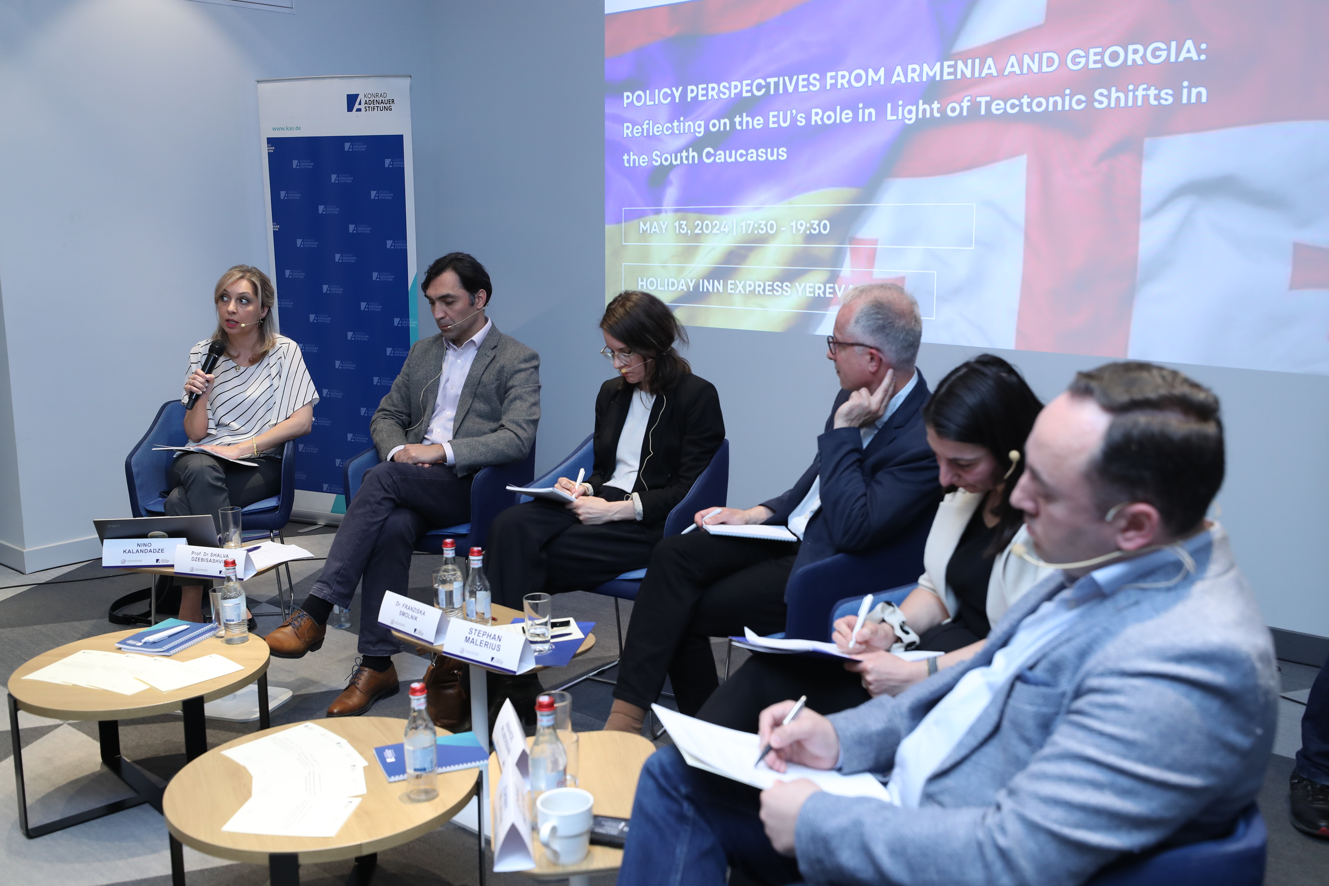 სესიას უხელმძღვანელა შტეფან მალერიუსმა - კონრად-ადენაუერის ფონდის სამხრეთ კავკასიის ბიუროს ხელმძღვანელმა. შესავალი სიტყვა საქართველოს პოლიტიკის ინსტიტუტის დირექტორმა, პროფ. კორნელი კაკაჩია წარმოთქვა. აგრეთვე, სიტყვით გამოვიდა სომხეთში ევროკავშირის წარმომადგენლობის ხელმძღვანელის მოადგილე, იან პლესინგერი. პანელურ დისკუსიაში, აგრეთვე, მონაწილეობდნენ: საქართველოს უნივერსიტეტის პოლიტიკისა და საერთაშორისო ურთიერთობების დეპარტამენტის პროგრამების ხელმძღვანელი, პროფესორი შალვა ძებისაშვილი, სომხური კვლევითი ცენტრის APRI-ის ვიცე-პრეზიდენტი სტრატეგიული განვითარებისა და პოლიტიკის საკითხებში ანაჰიდე პილიბოსიანი, და ორბელის ანალიტიკური ცენტრის უფროსი მკვლევარი ჯონი მელიქიანი.