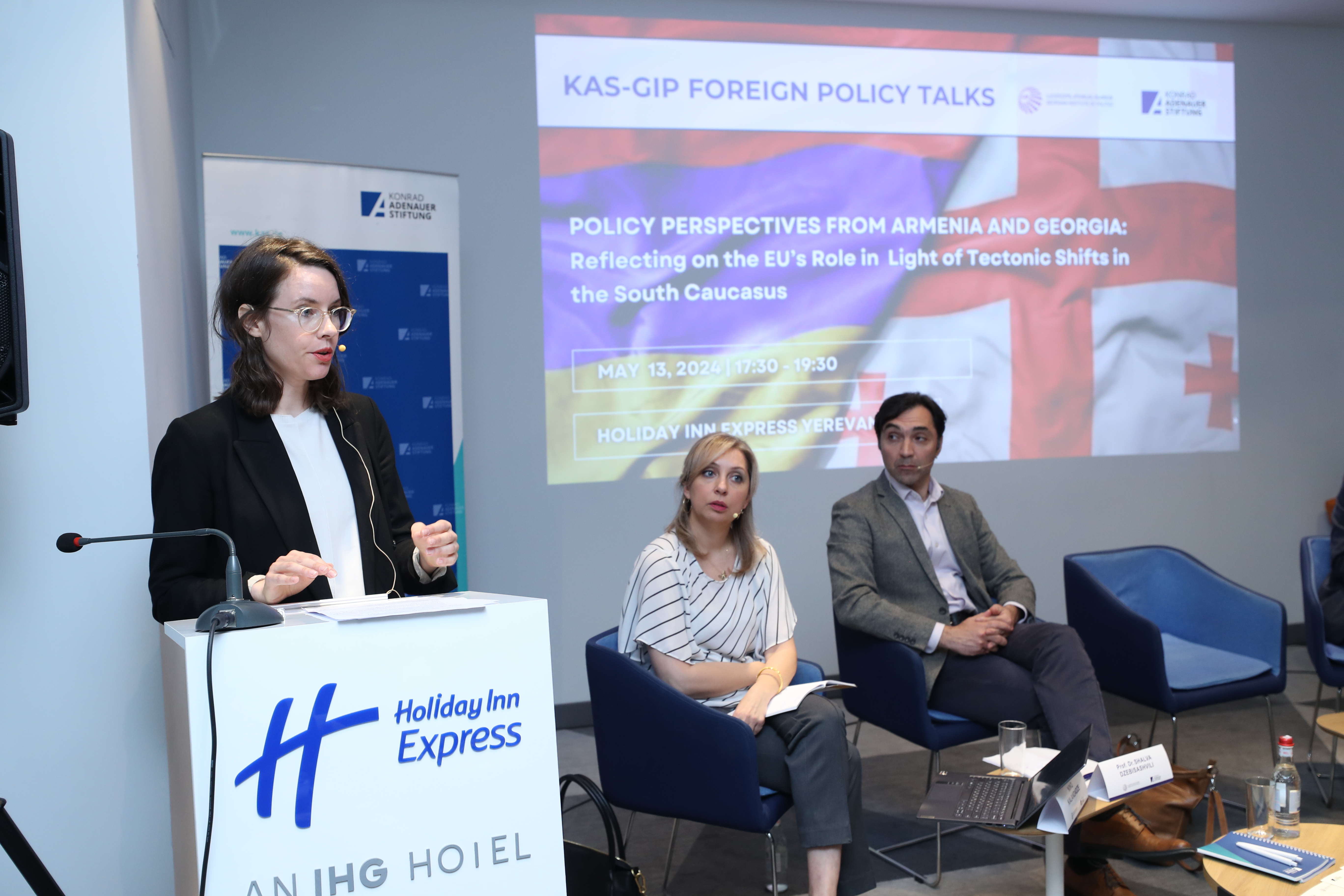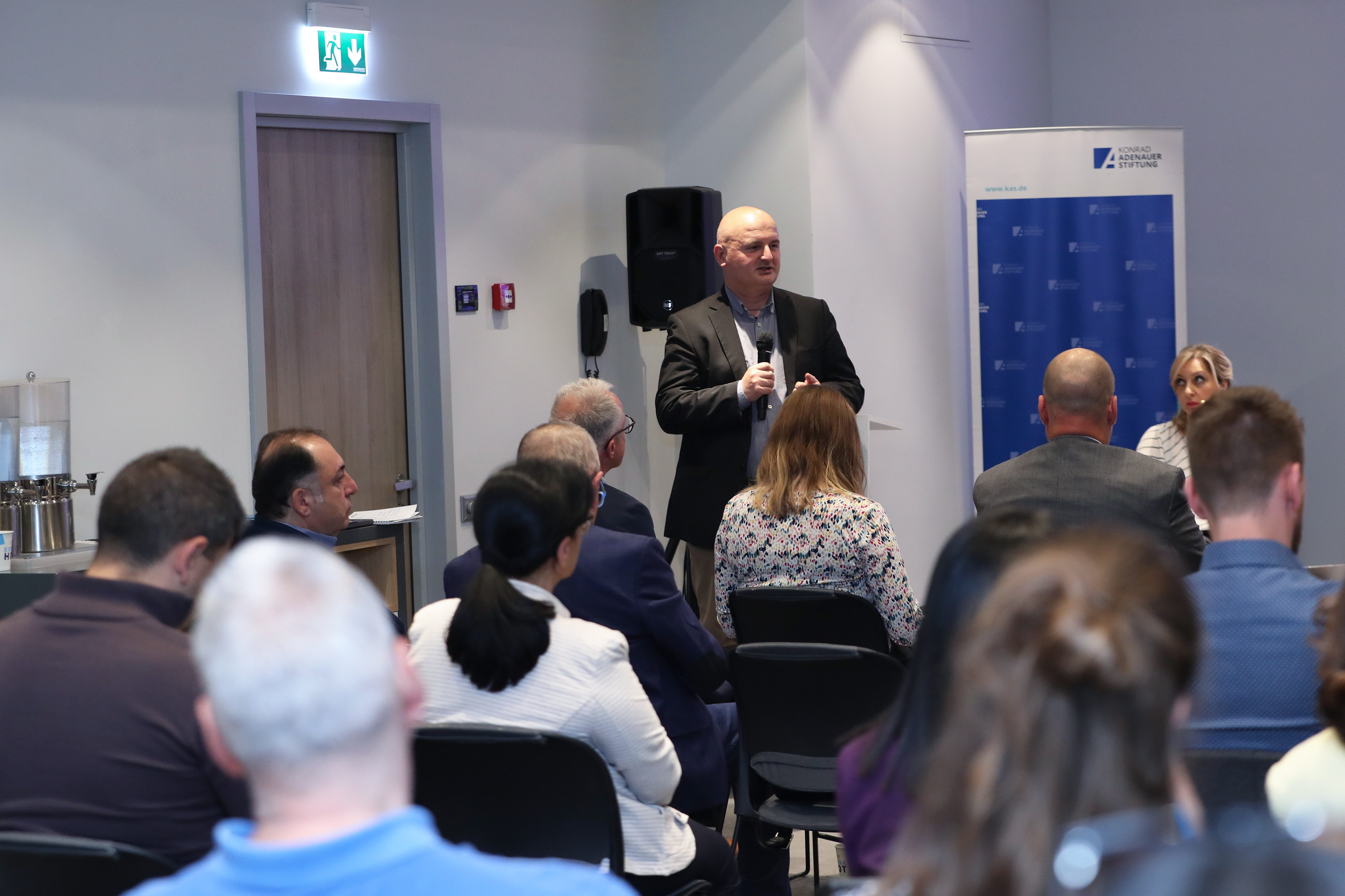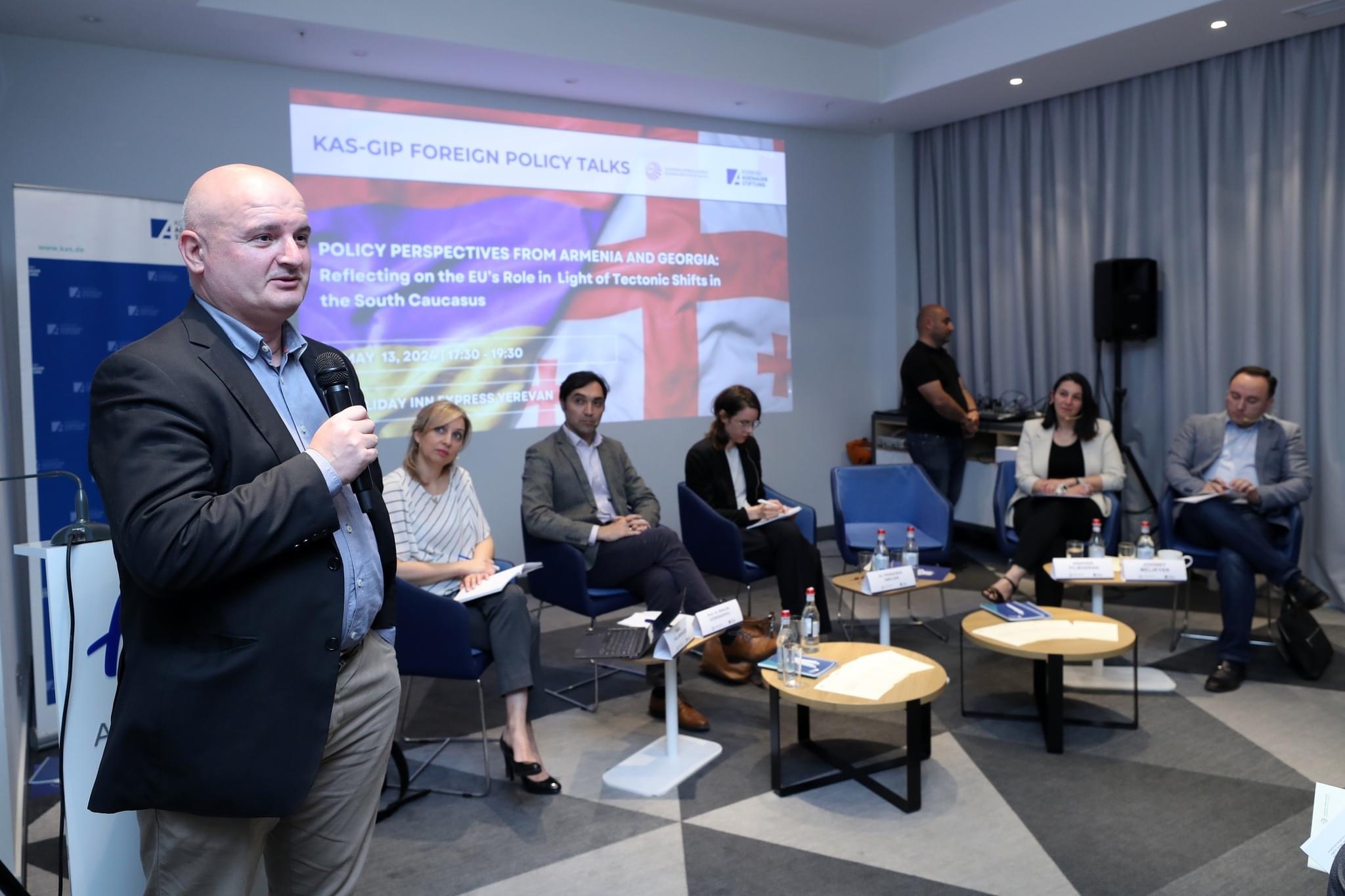 სესიას უხელმძღვანელა შტეფან მალერიუსმა - კონრად-ადენაუერის ფონდის სამხრეთ კავკასიის ბიუროს ხელმძღვანელმა. შესავალი სიტყვა საქართველოს პოლიტიკის ინსტიტუტის დირექტორმა, პროფ. კორნელი კაკაჩია წარმოთქვა. აგრეთვე, სიტყვით გამოვიდა სომხეთში ევროკავშირის წარმომადგენლობის ხელმძღვანელის მოადგილე, იან პლესინგერი. პანელურ დისკუსიაში, აგრეთვე, მონაწილეობდნენ: საქართველოს უნივერსიტეტის პოლიტიკისა და საერთაშორისო ურთიერთობების დეპარტამენტის პროგრამების ხელმძღვანელი, პროფესორი შალვა ძებისაშვილი, სომხური კვლევითი ცენტრის APRI-ის ვიცე-პრეზიდენტი სტრატეგიული განვითარებისა და პოლიტიკის საკითხებში ანაჰიდე პილიბოსიანი, და ორბელის ანალიტიკური ცენტრის უფროსი მკვლევარი ჯონი მელიქიანი.