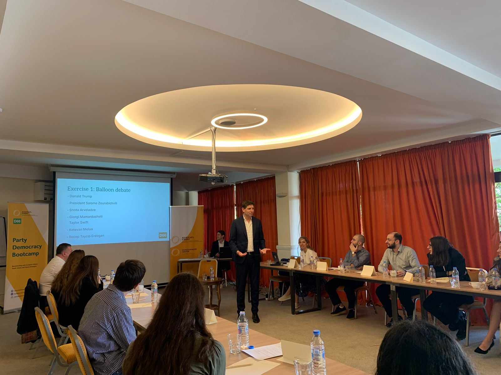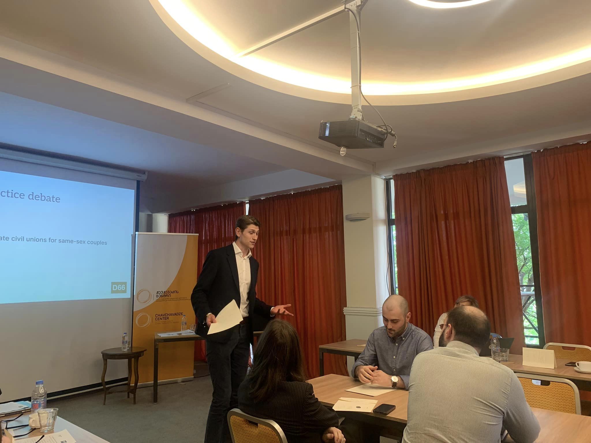 დღის ბოლო სესიას წარუძღვა ნიდერლანდებიდან სპეციალურად ამ დღისთვის ჩამოსული სტუმარი, ჰოლანდიის პარლამენტის წევრი, იან პატერნოტე. მან ისაუბრა დებატებისა და მოლაპარაკებების ხელოვნებაზე და კოალიციური მთავრობების ფორმირების კულტურაზე ნიდერლანდებში. დღის ბოლოს გაიმართა ბრიტანული საპარლამენტო სტილის დებატები.