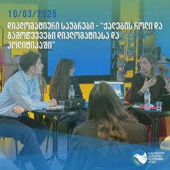 10 მარტს, ქალთა საერთაშორისო დღის აღსანიშნავად, საქართველოს ახალგაზრდა დიპლომატთა კლუბმა უმასპინძლა დისკუსიას თემაზე "დიპლომატიური საუბრები - ქალთა როლი და გამოწვევები დიპლომატიასა და პოლიტიკაში." ღონისძიებაზე, რომელშიც მონაწილეობდა ნინო კალანდაძე, ჭავჭავაძის ცენტრის აღმასრულებელი დირექტორი და საქართველოს საგარეო საქმეთა მინისტრის ყოფილი მოადგილე (2008-2012), განიხილეს გენდერული თანასწორობის, პოლიტიკური ძალაუფლებისა და ავტორიტარიზმის გაძლიერების ურთიერთკავშირი.