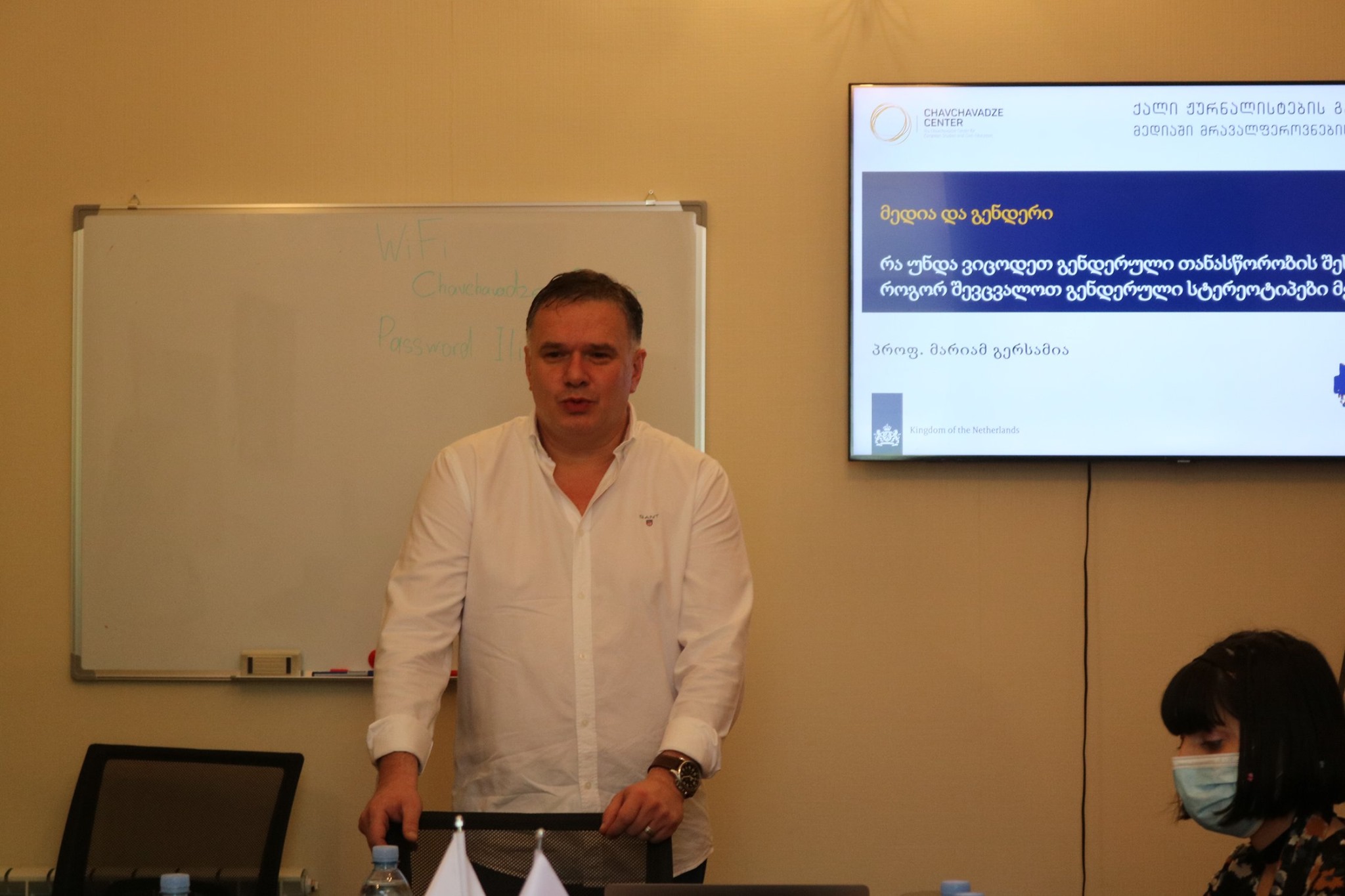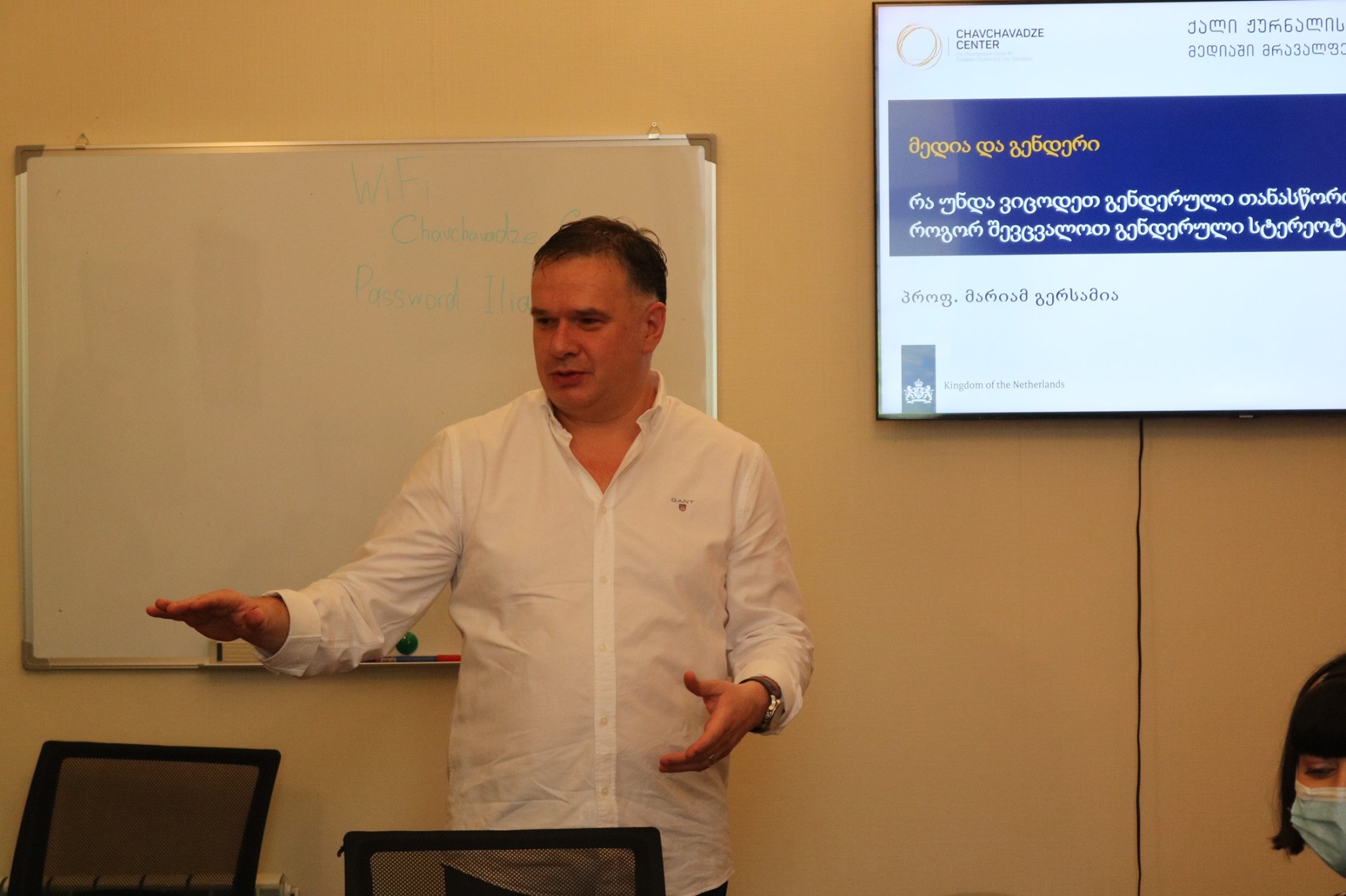 თბილისის სახელმწიფო უნივერსიტეტის პროფესორების მარიამ გერსამიას და მაია ტორაძის თეორიული და პრაქტიკული სესიების შემდეგ, მომავალმა ჟურნალისტებმა იმსჯელეს თუ რა გზებითაა შესაძლებელი გენდერული სტერეოტიპების შეცვლა მედიაში (ახალ ამბებში, თოქ-შოუებსა და რეკლამებში).