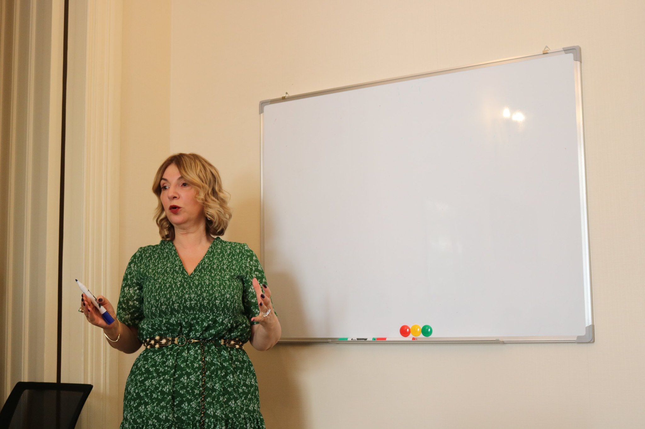 მომავალ ჟურნალისტებს ფსიქოლოგმა და ფსიქოთერაპევტმა მარინა გოქსაძემ გააცნო რეფრეიმინგის ტექნიკა, წარმატების მიღწევის სხვადასხვა მოდელი, რომლის შემდეგაც სტუდენტებმა მონაწილეობა მიიღეს რესურსების გაძლიერებაზე ორიენტირებულ თერაპიულ სესიაში.
